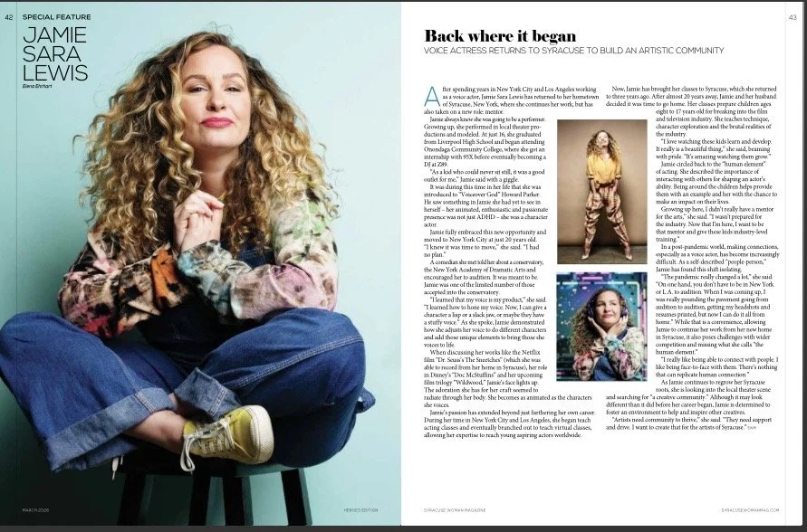 Currently, among many other projects, you can hear my work in Dr. Seuss’ The Sneetches on Netflix, where I voice Sally Sneedly (and additional characters), as well as in the upcoming, highly anticipated Laika Studios feature film Wildwood - from the creators of Coraline, Kubo and the Two Strings, and ParaNorman.